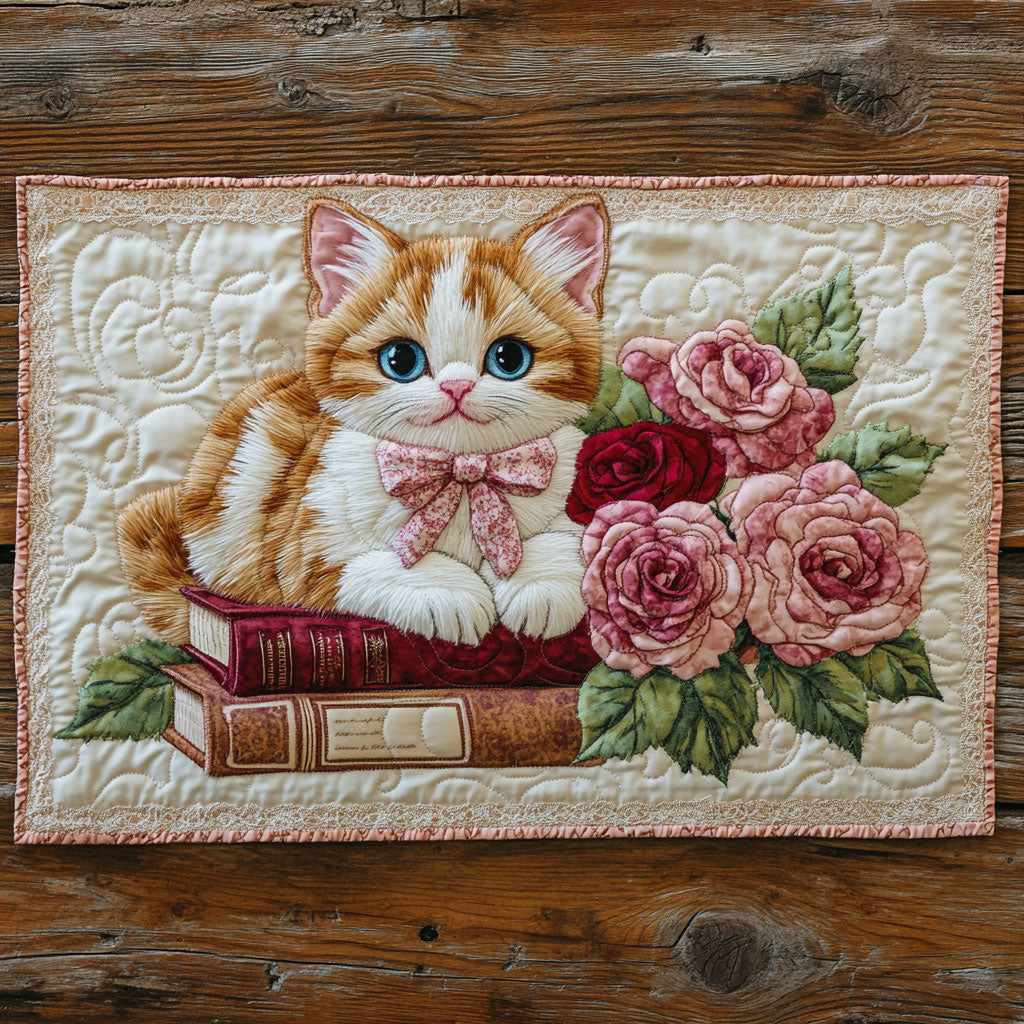 Cat And Book CP2105030CL Quilted Table Runner