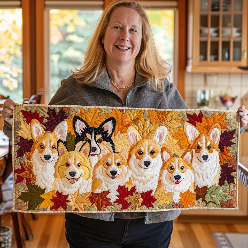 Corgi Dogs And Autumn Leaves XR0409003CL Quilted Table Runner